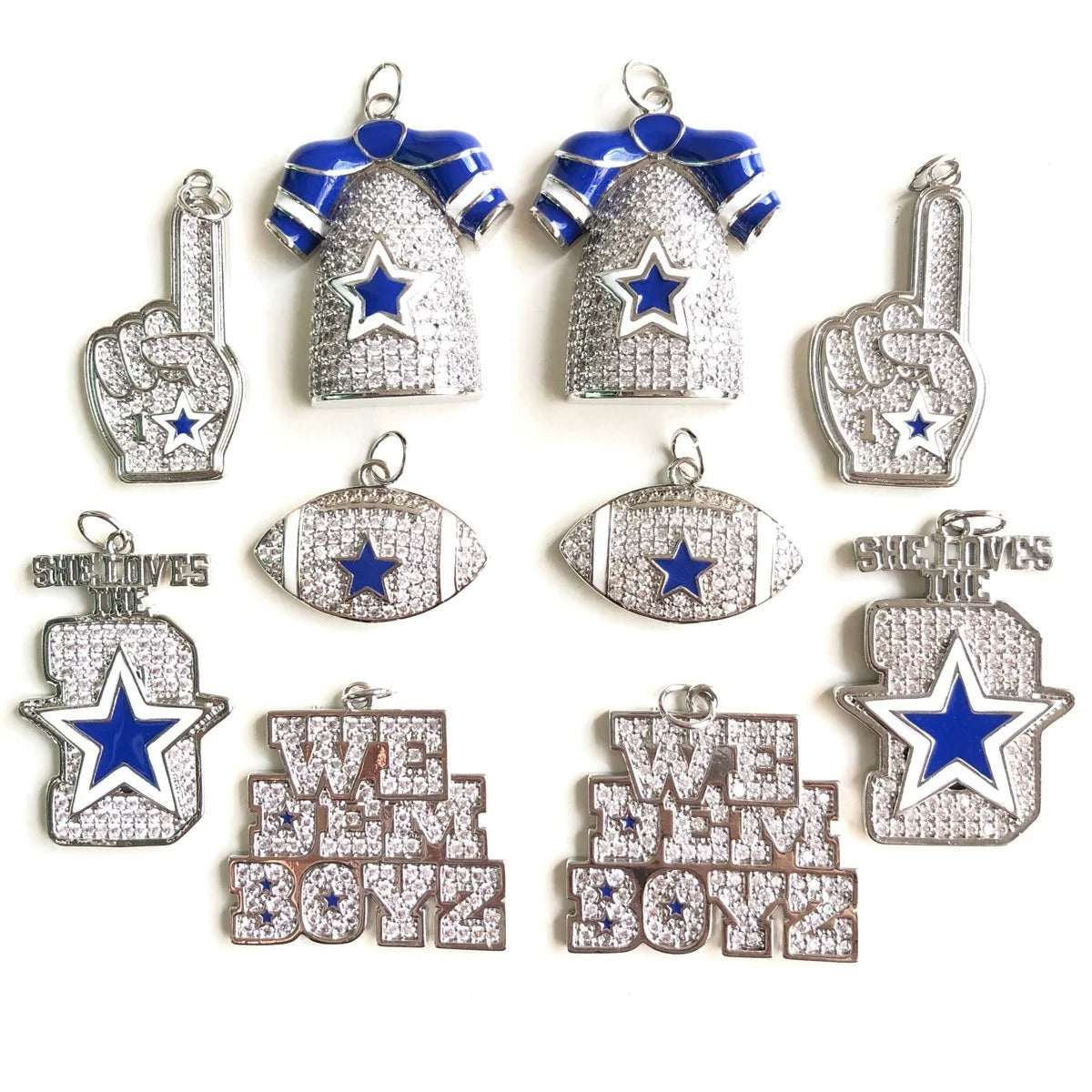 10PCS Cubic Zirconia Pave Football Charm Set – Blue Star Sports Pendants for Bracelets & Necklaces