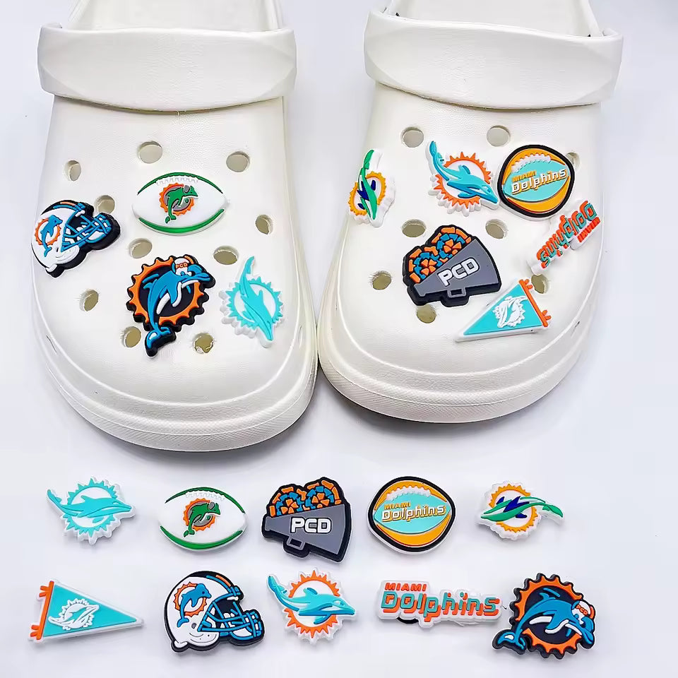 10pcs Miami Dolphins Football-Themed Shoe Charms for Clogs – Sports Ball Accessories for Men & Boys