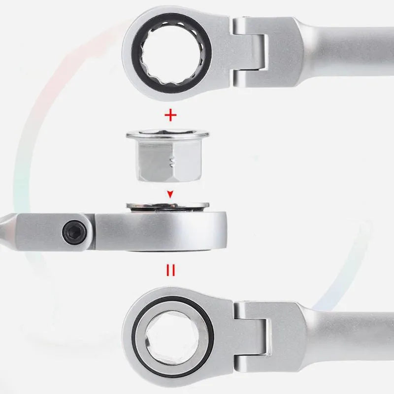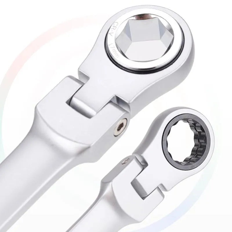 180-DEGREE ADJUSTABLE -- The flex-head ratchet wrench is 180-degree rotated and can perform precise repair work in any space.
