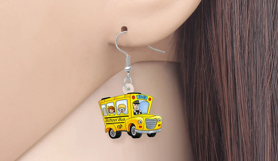 Celebrate the journey of education with our charming pair of school bus earrings, a delightful tribute to teachers, principals, bus drivers, educators, librarians, and more. These Frizzle style school bus earrings are perfect for teacher gifts, teacher appreciation, or completing a Ms. Frizzle costume.
