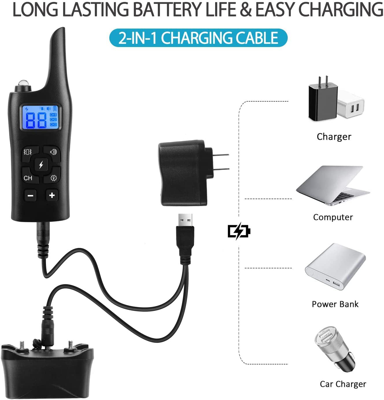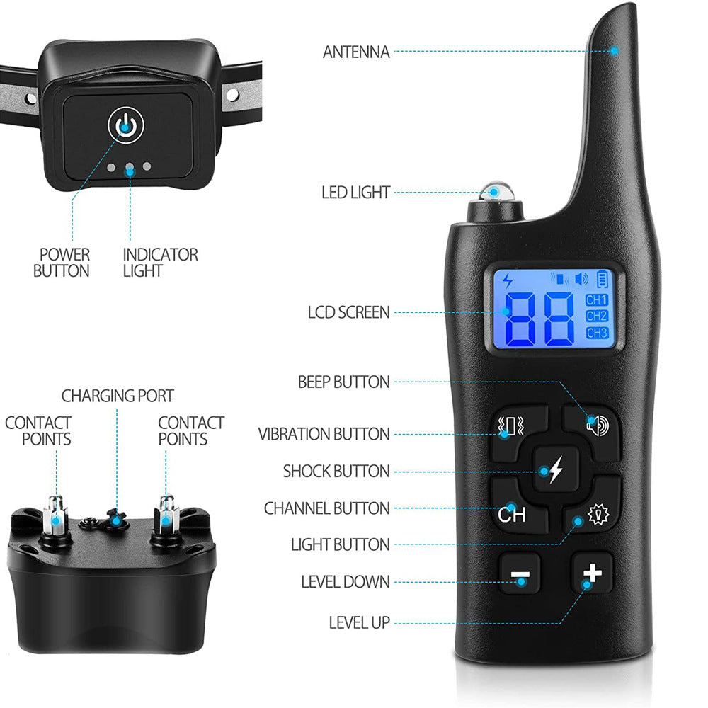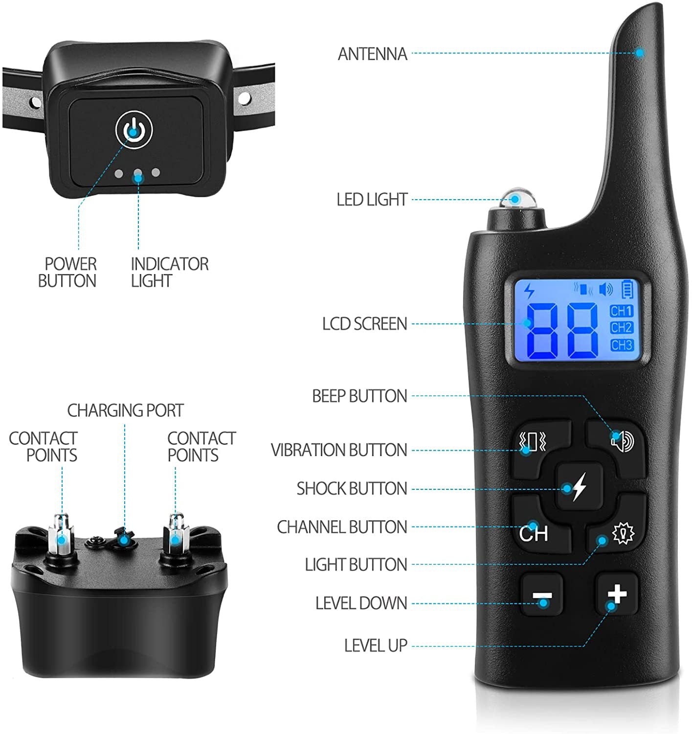 The design of remote control technology is to ensure the remote control range up to 800 meters and let you train your dog in the park or backyard. Waterproof and rechargeable receiver and transmitter, so you can train your dog in rainy days; 14-24" adjustable collar size for neck.