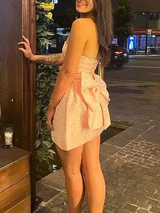 This Jacquard Strapless Knot A-line Mini Dress is perfect for your next party. Its structured design and strapless neckline will make you stand out, while the jacquard fabric adds a touch of elegance. Dress it up or down for any occasion and make a statement with this versatile piece.