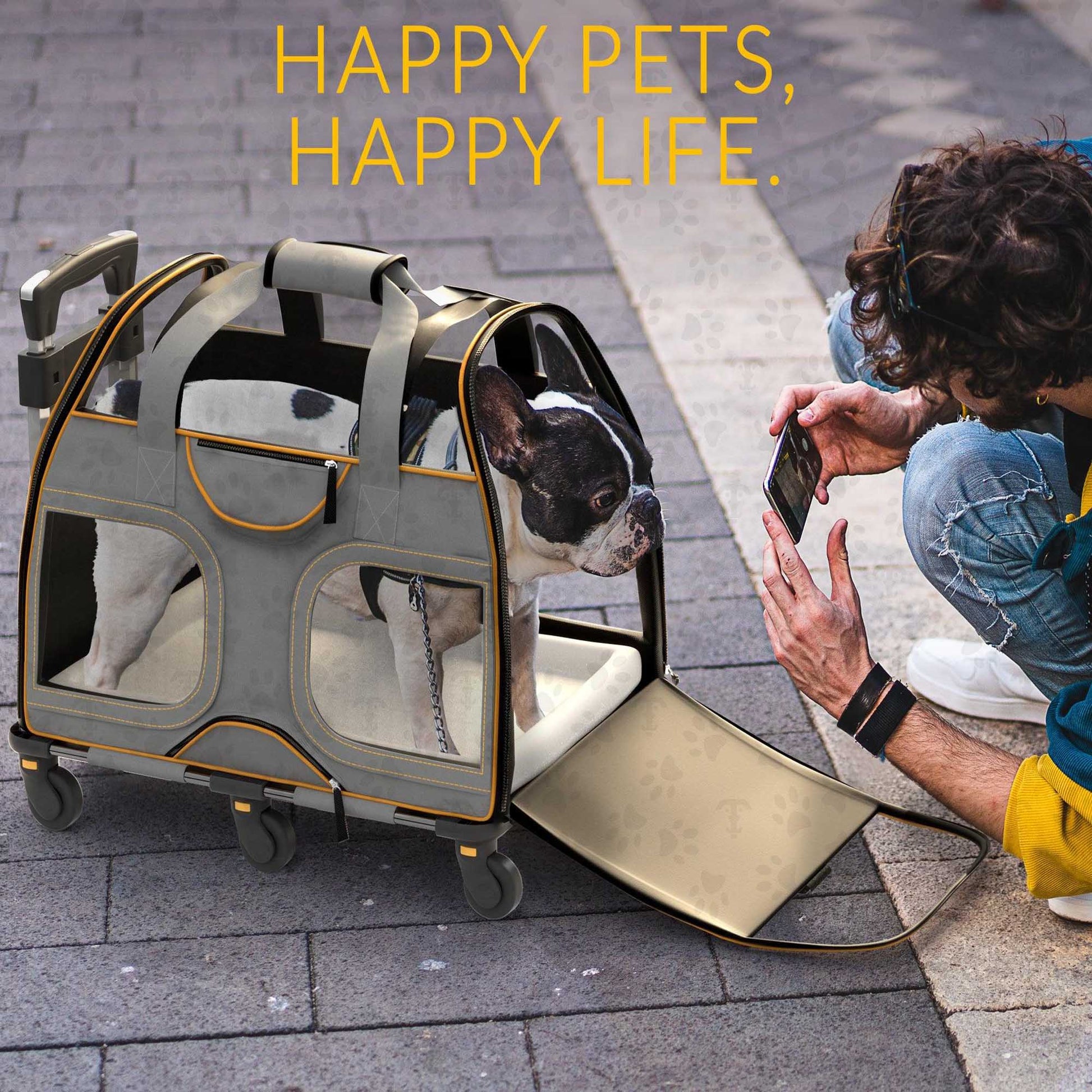 Doglory's Luxury Rider features a double telescopic handle and removable wheels, among many other attributes, providing versatility and durability. It meets airline requirements while ensuring your pet's safety and comfort.