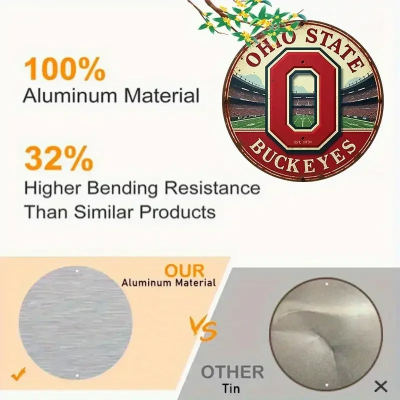 Ohio State Buckeyes Wall Decor – 2D Round Aluminum Metal Sign for Home & Living Spaces