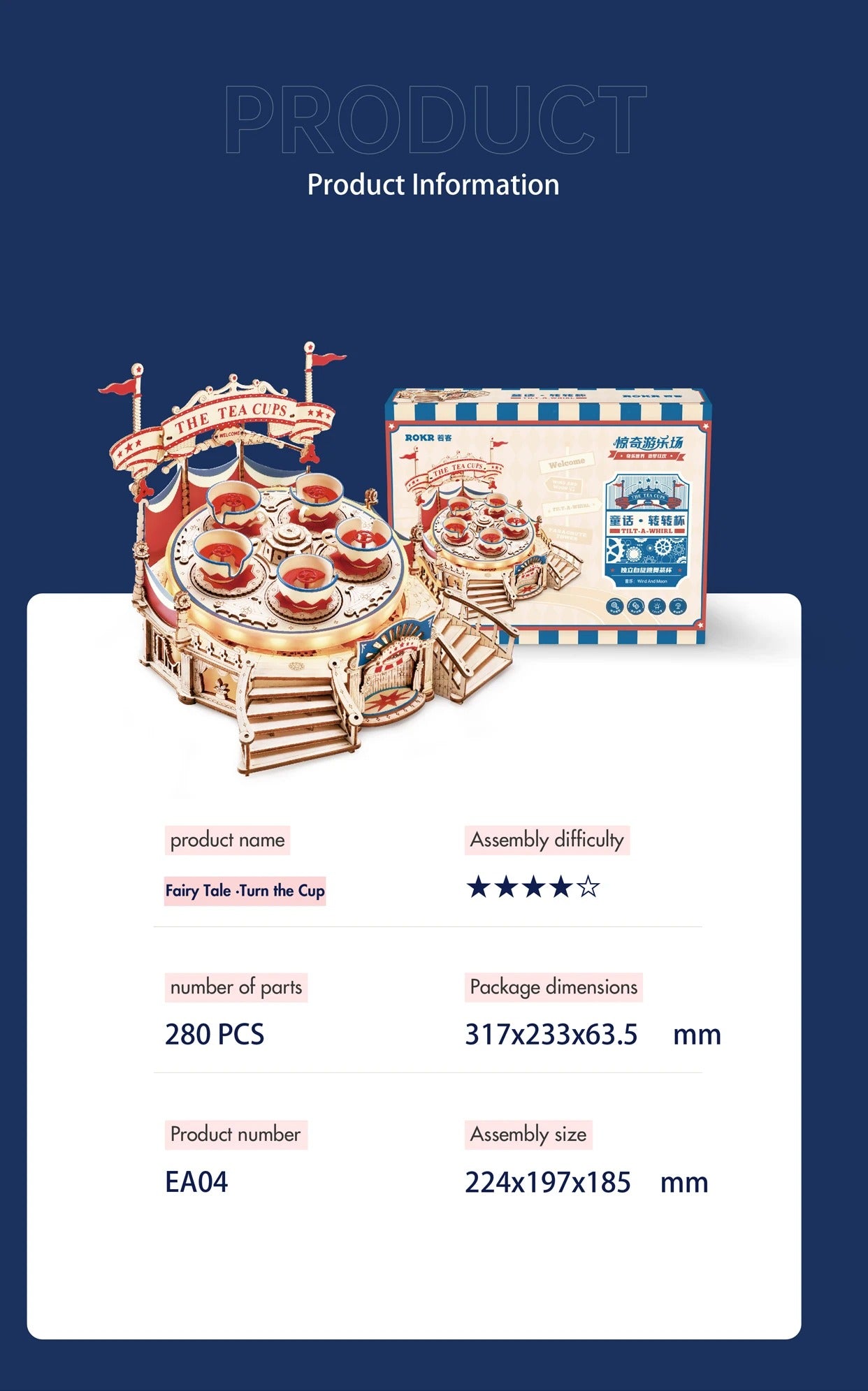 ROKR Amusement Park Series Tilt-A-Whirl Teacup 3D Wooden Puzzle Building Kit