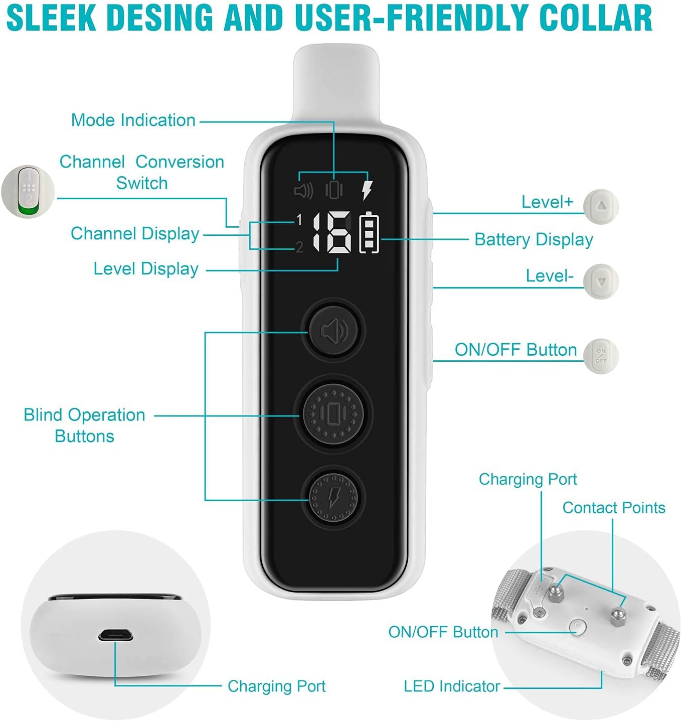 • Training Modes: Beep, Vibration, Safe Shock (Adjustable 1-16 Levels)